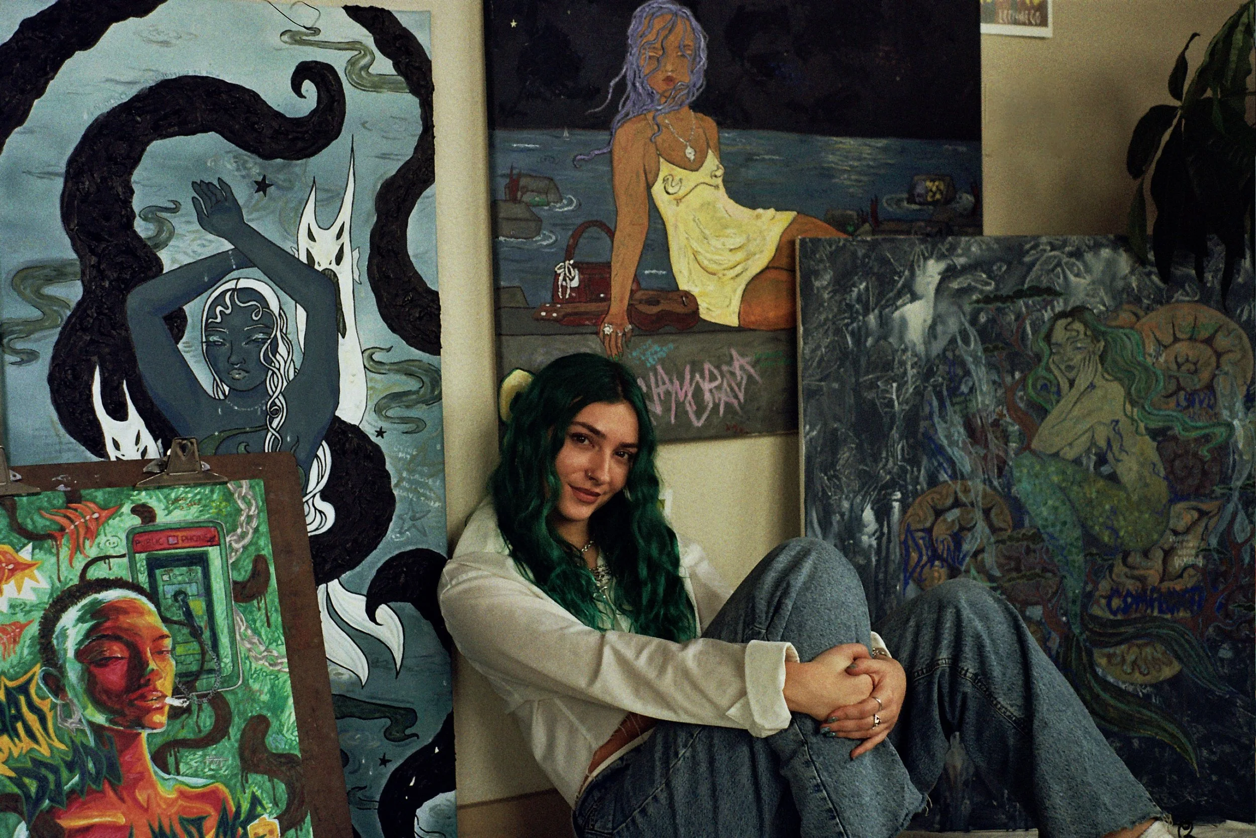 The artwork becomes a journal entry and an intimate invitation to my mind's eye. I enjoy blending elements such as graffiti, harsh lines, industrial spaces and combining them with soft aspects of nature, most often water and the ocean. I always felt the most alive and inspired when I’m surrounded by her. Growing up in Hawaii and having periods of my life painting on the beach everyday has really spoiled me as I've gotten to connect and heal through her energy. To me she represents Divine femininity.