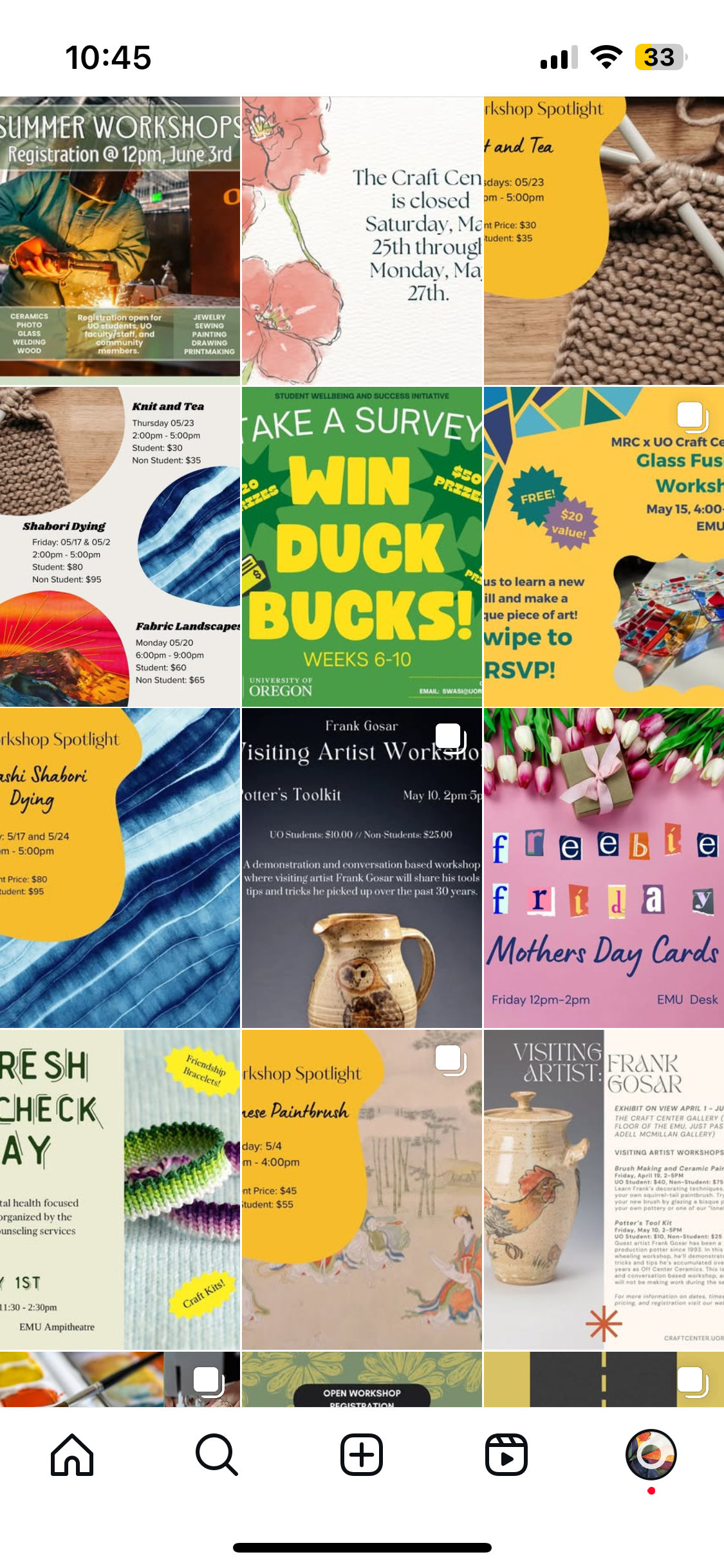 I also got creative by making silly and relatable videos and posts that highlighted the Craft Center and its workshops—while also encouraging students to engage and see the Craft Center as a fun place to be.